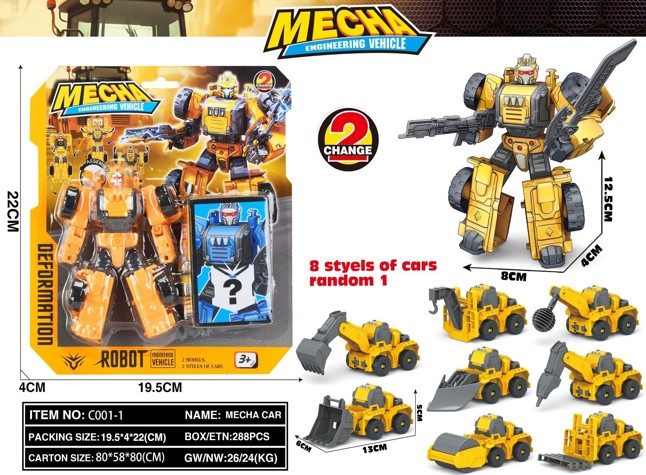 Размер: 13*6*5 см (машина), 8*4*12,5 см (робот)Материал: пластикЦвет: желтыйДетали: машинка-трансформерУпаковка: европодвес