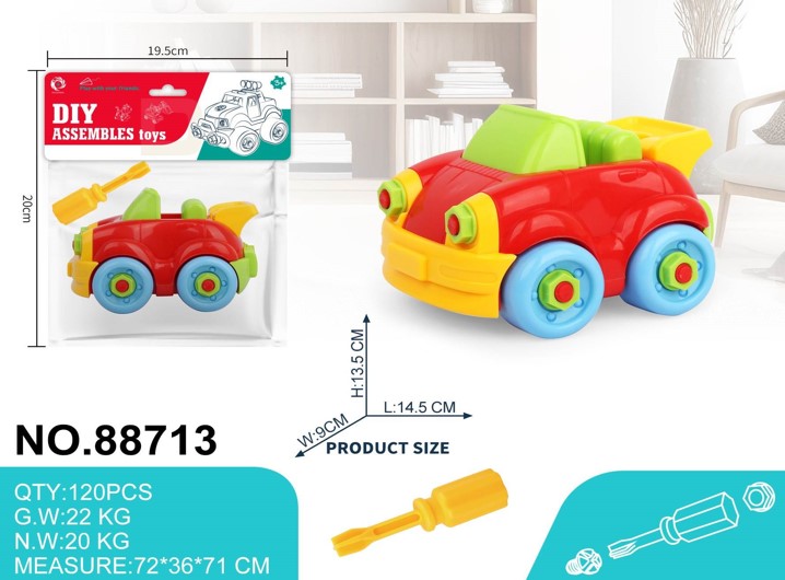 Размер: 14,5*9*13,5 смМатериал: пластикЦвет: ассортиКомплектация: машинка + отверткаУпаковка: европдвес