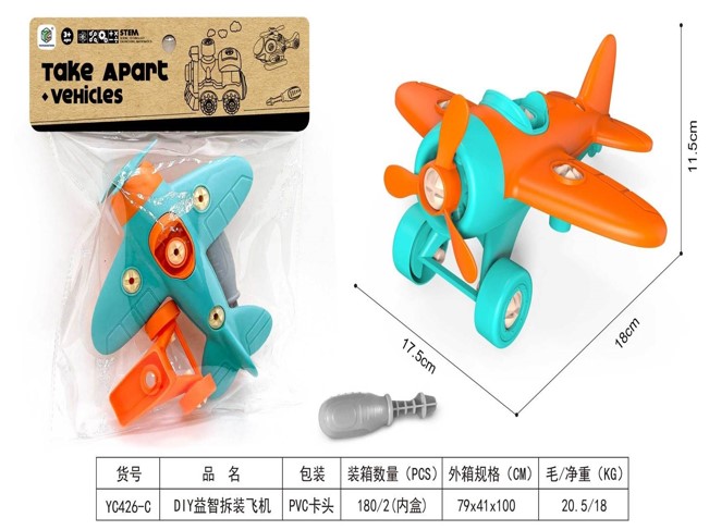 Размер: 18*17,5*11,5 смМатериал: пластикЦвет: ассортиКомплектация: самолет + отверткаУпаковка: европодвес