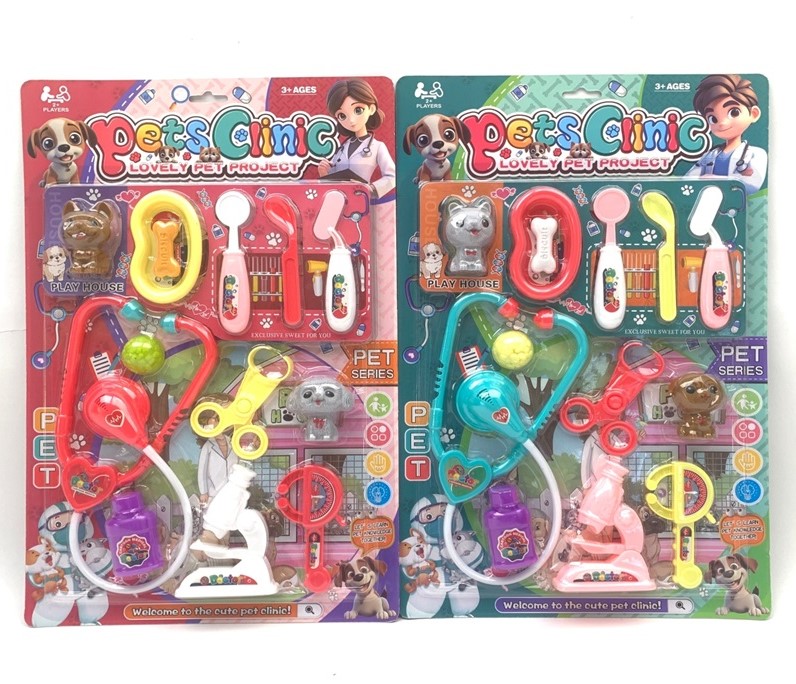 Комплектация: микроскоп, стетоскоп, миска для корма, 2 питомцы, зеркальце, 2 ложечки лекарство, ножницы, тонометр, игрушка