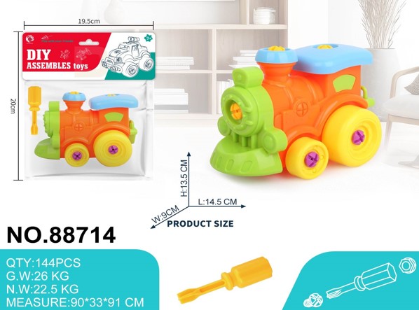 Размер: 14,5*9*13,5 смМатериал: пластикЦвет: ассортиКомплектация: паровозик + отверткаУпаковка: европодвес