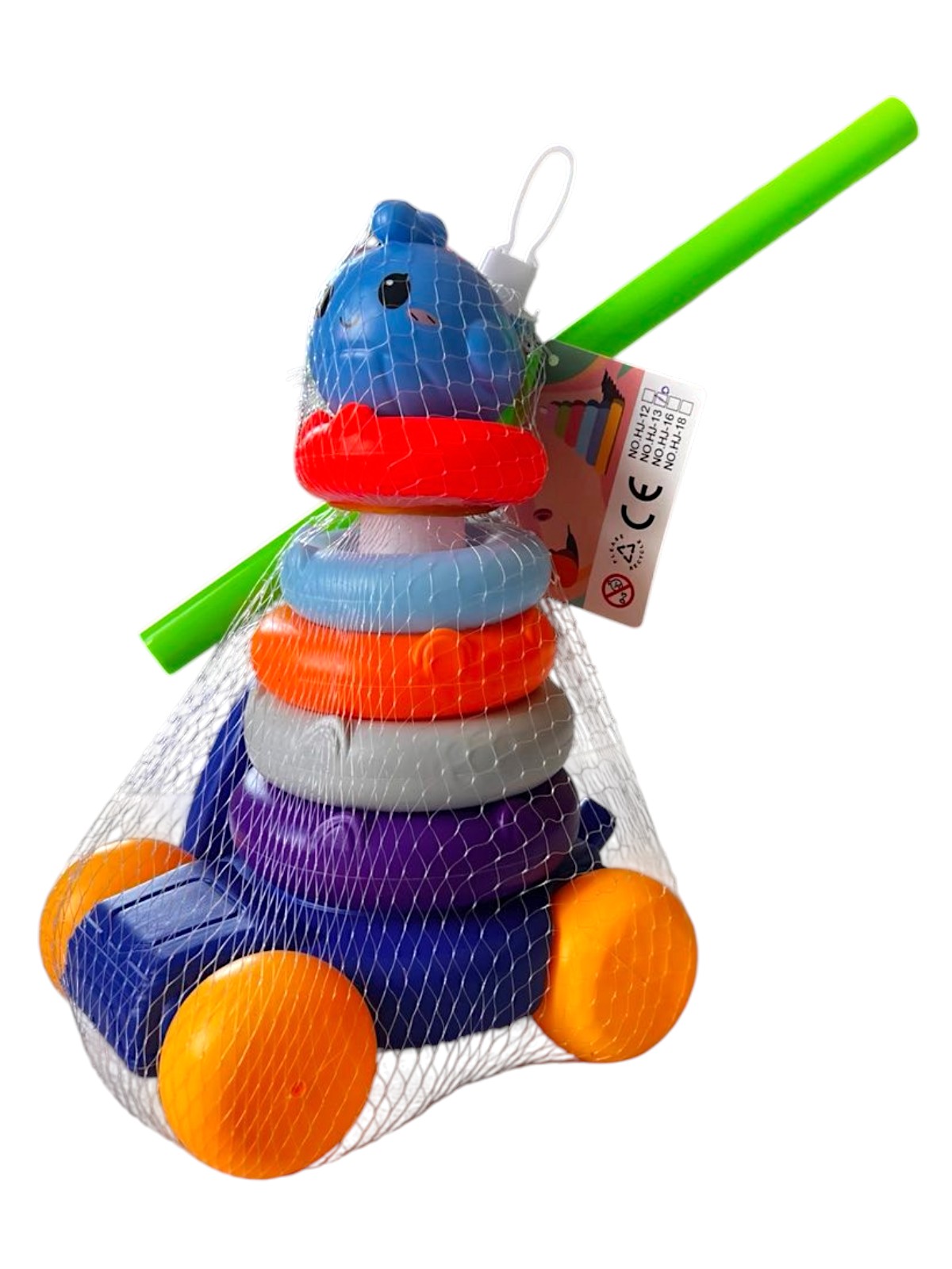 Детали: 5 колец + верхушка, подставка на колесиках с ручкой, наклейки