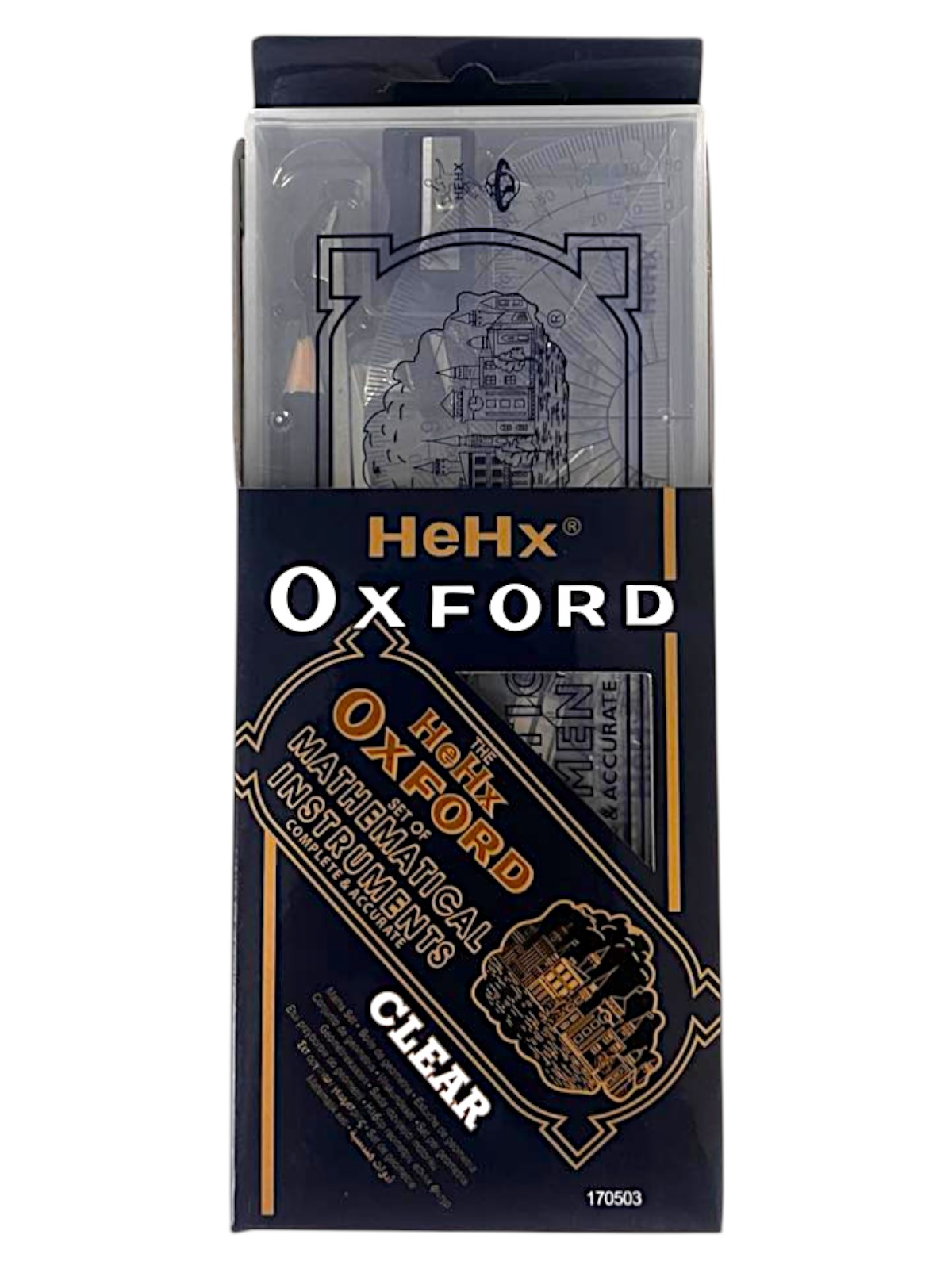 Комплектация: циркуль, измерительный циркуль, линейка, карандаш, 2 треугольника, ластик, транспортир, точилка