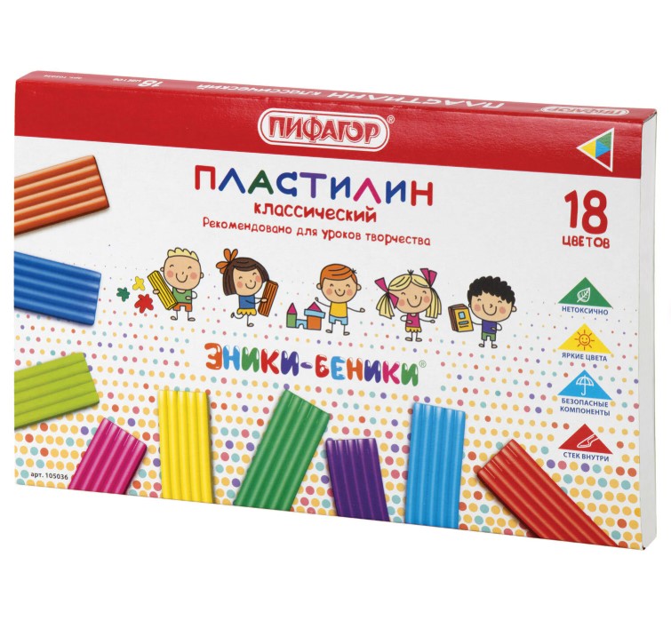Пластилин 18цв ПИФАГОР, со стеком, классический, 105036