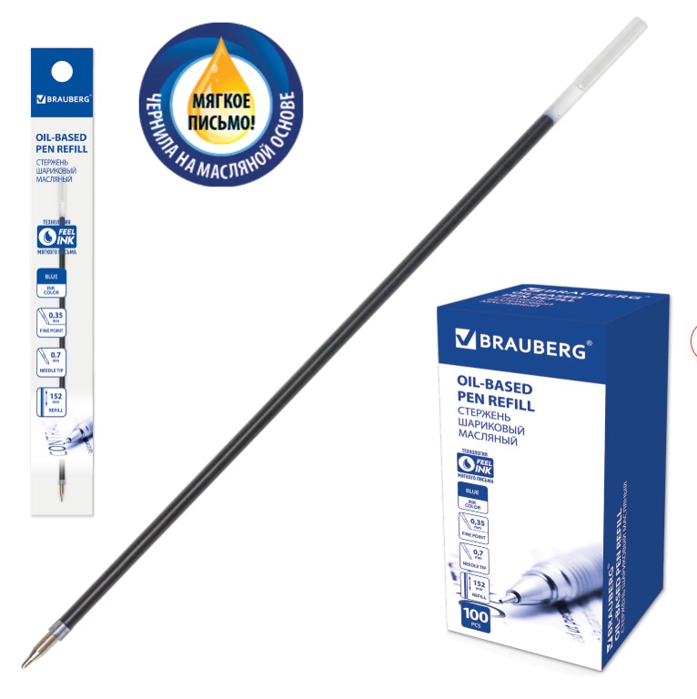 Стержень 152 мм синий масляный шарик. BRAUBERG,0,7мм, 170236