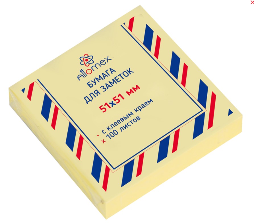 Блок для заметок 51*51мм, 100л Attomex желтый 2010502