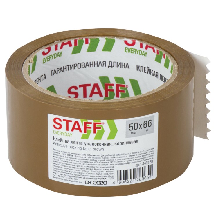 Скотч 50- 66 40мк коричневый STAFF упаковочный, 440159