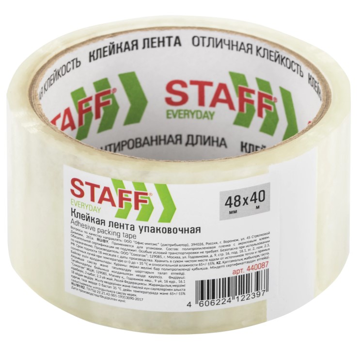 Скотч 48-40 40 мк прозрачный STAFF, упаковочный 440087