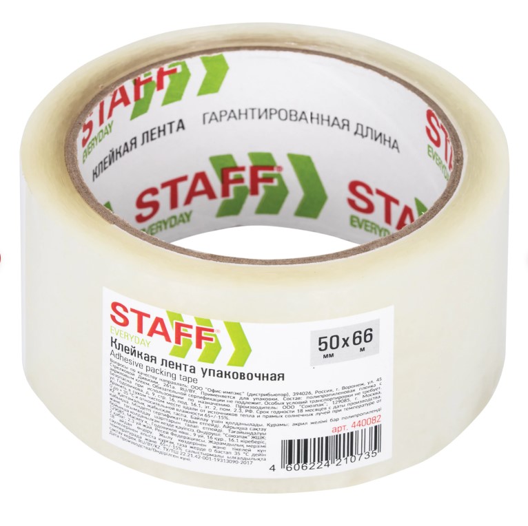 Скотч 50- 66 40мк прозрачный STAFF упаковочный, 440082