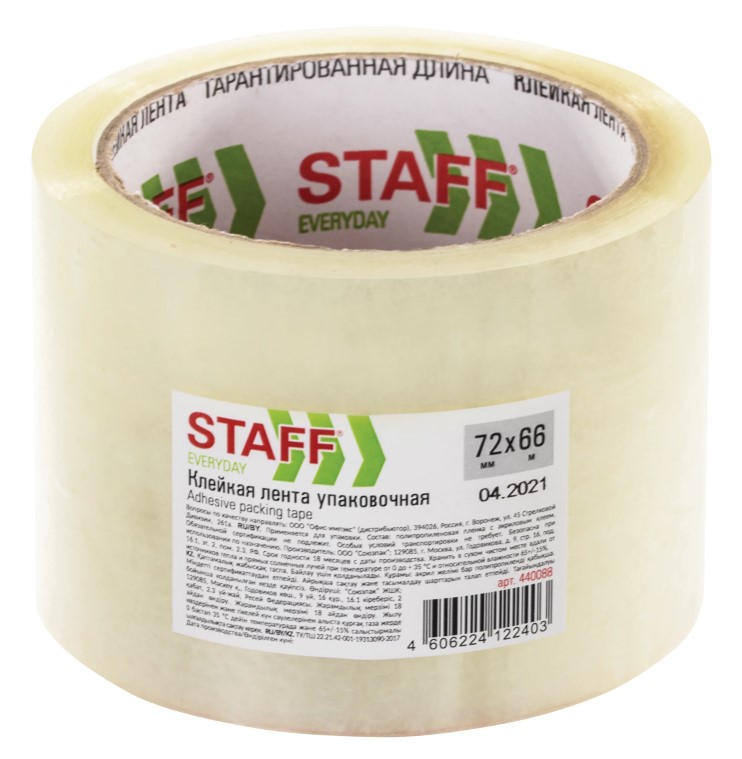 Скотч 50- 66 40мк прозрачный STAFF упаковочный, 440082...