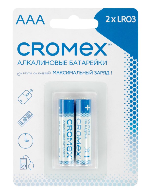 Батарейки CROMEX Alkaline, ААA(LR03,24А), алкалин, 2 шт, 457129