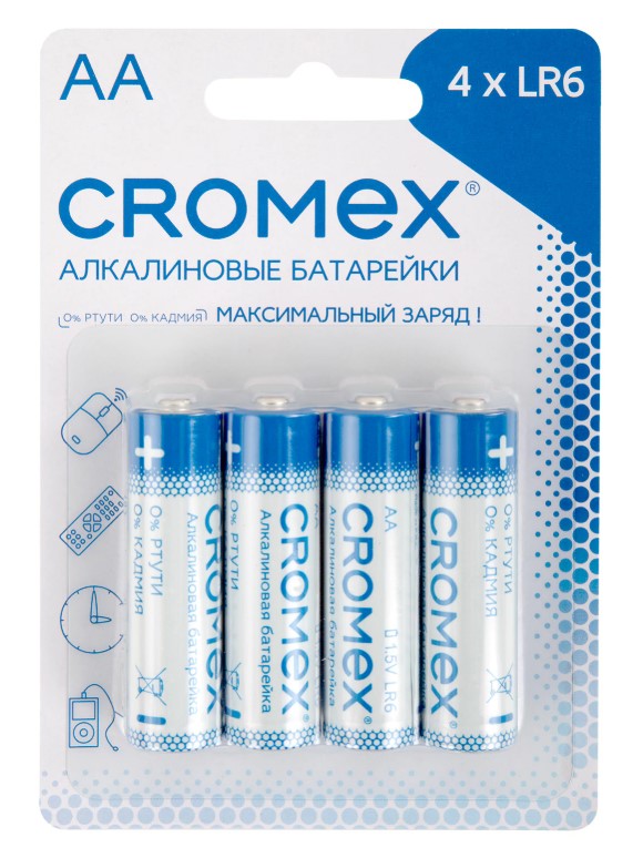Батарейки CROMEX Alkaline, АА(LR6,15А), алкалин, 4 шт, 457130