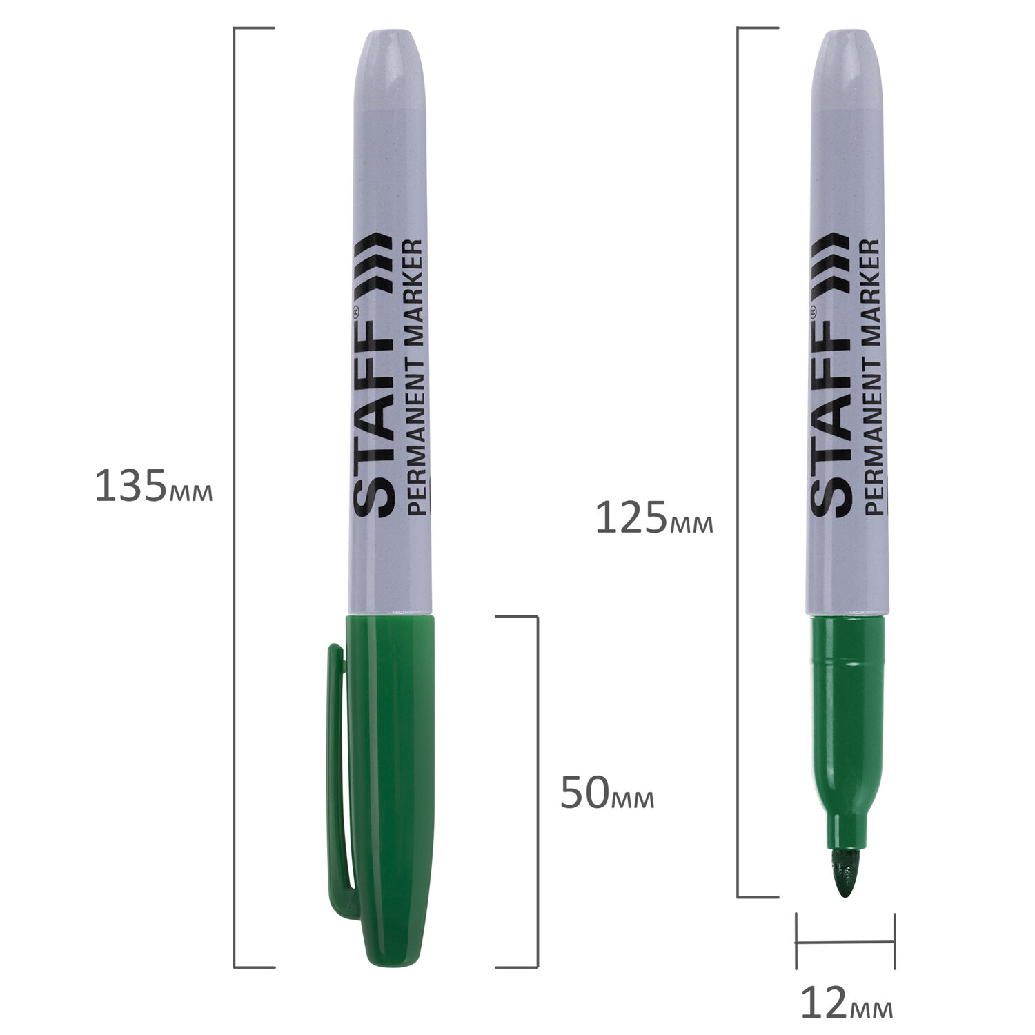 Маркер зеленый перманентный STAFF, 2,5 мм, круг.након., эргоном.корп.