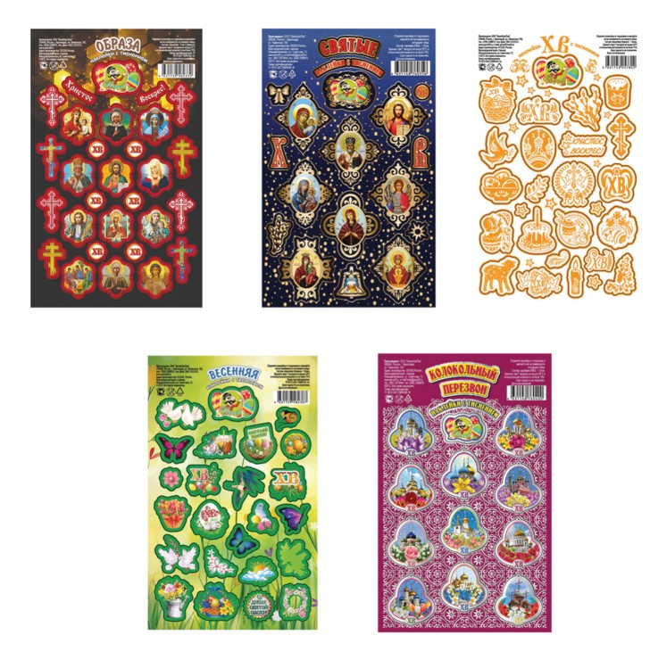 Наклейки пасхальные с тиснением, 5 дизайнов, ассорти, 592666