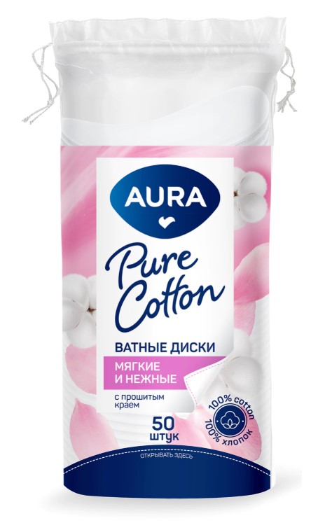 Ватные диски AURA, 50 штук; комплект, двусторонние, 117591