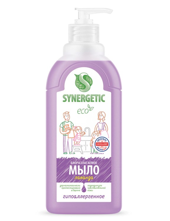 Мыло жидкое 500 мл SYNERGETIC, лаванда, гипоаллерг., 701923